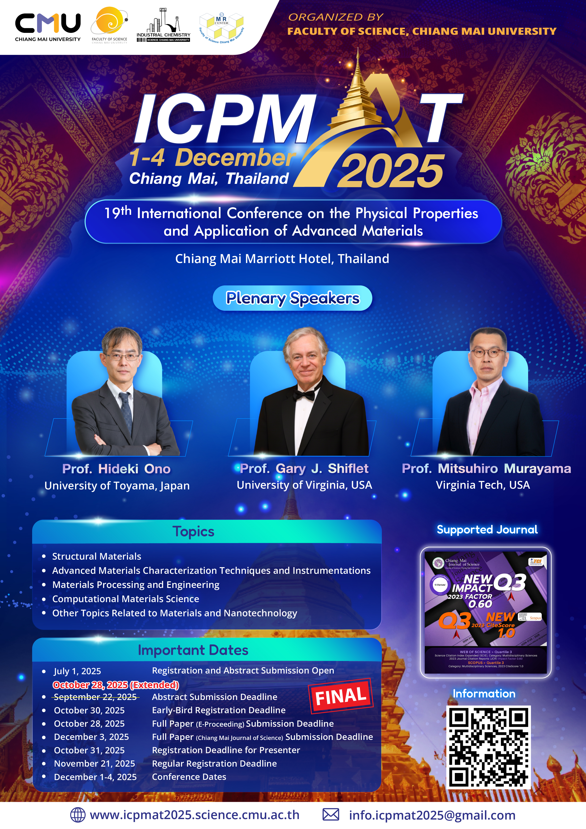 | December 3, 2025 | Full paper (Chiangmai journal of science) Submission Deadline |